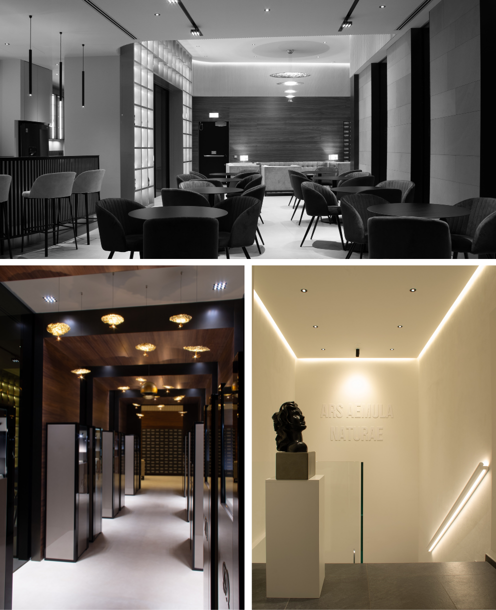 Die Cammilli Academy umfasst vielseitige, moderne Räume, die für unterschiedliche Zwecke gestaltet wurden – darunter Verkaufspräsentationen, Konferenzräume, spezialisierte Bereiche mit modernen Bildschirmen, Ausstellungsflächen sowie ein kleines Restaurant mit einer exklusiven Weinverkostungszone.